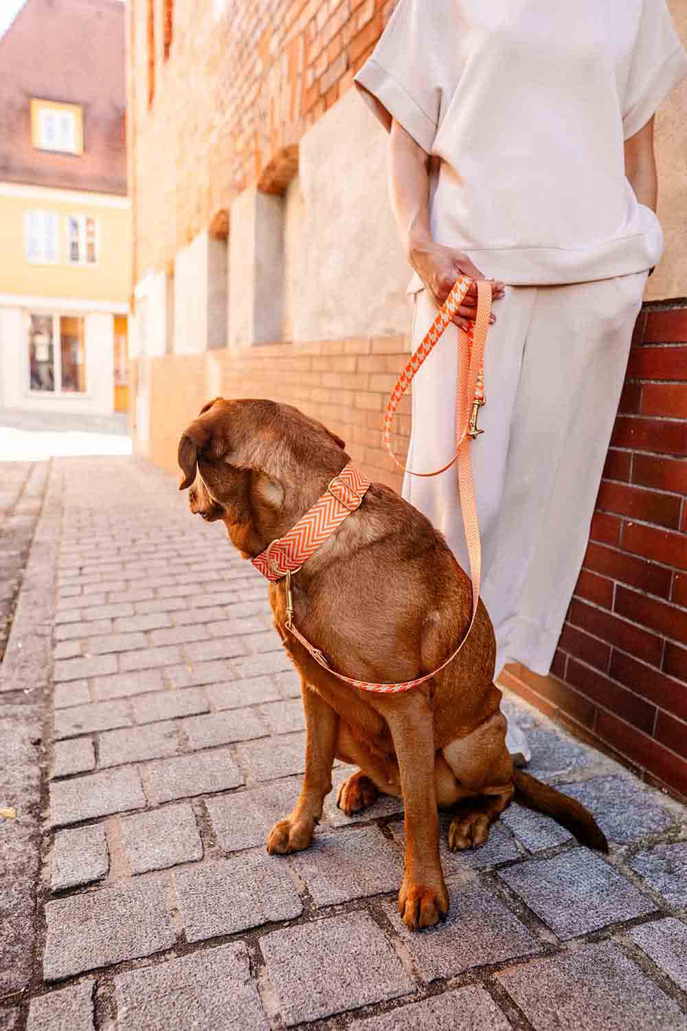 Unsere Leinen, Stoffhalsbänder und Hundegeschirre sind sowohl für die Maschinenwäsche als auch für die Handwäsche geeignet.