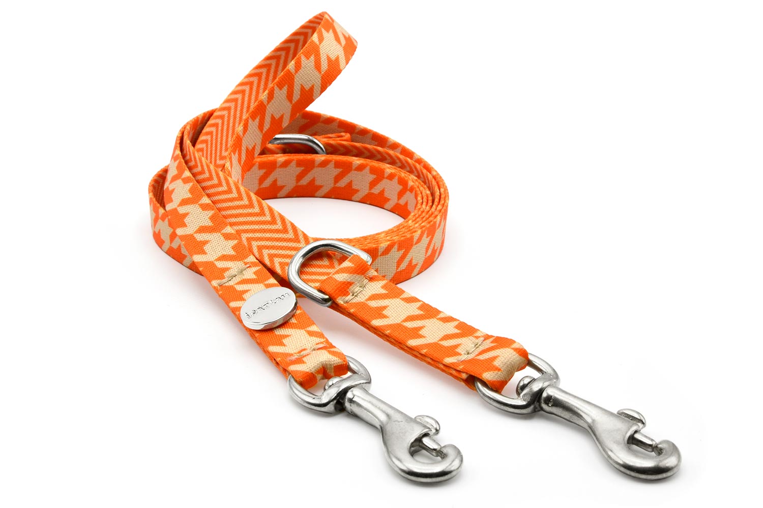 Führleine 2-fach verstellbarDurch Einhaken des Karabiners in den ersten oder zweiten eingenähten Ring lässt sich diese Leine in zwei Längen verstellen. Sie kann als kurze oder lange Hundeleine verwendet werden.