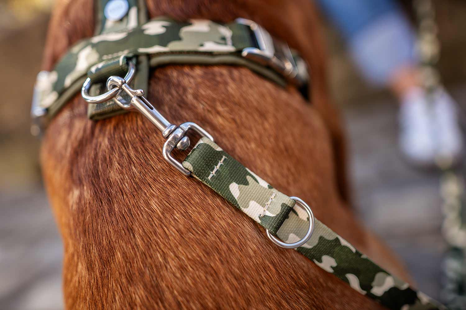 - Regelmäßiges Ölen: Für lange Haltbarkeit sollten die beweglichen Teile der Karabiner (Gewinde und Feder) sowie der Steckschließen (Backen und Feder) alle zwei Monate geölt werden – je nachdem, wie oft Dein Hund ins Wasser geht oder sich im Dreck wälzt.