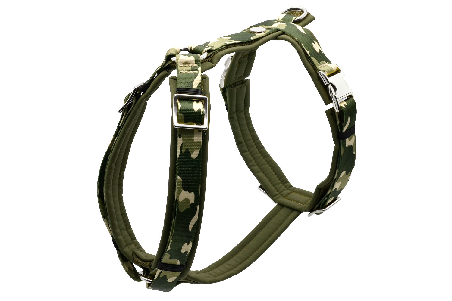 Unser Hundegeschirr bietet zahlreiche Verstellmöglichkeiten, sodass sowohl Halsung als auch der Bauchgurt optimal an den Körper des Hundes angepasst werden können. Dadurch eignet es sich auch ideal für Junghunde und Welpen, die sich noch im Wachstum befinden. Das Geschirr ist besonders rückenschonend und verfügt über eine vollständig unterlegte Polsterung für maximalen Tragekomfort.