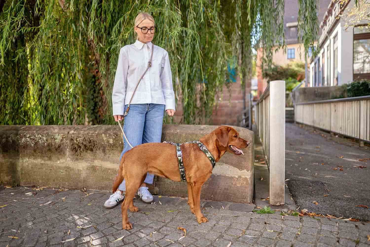Umhängeleine 2-fach verstellbarMöchtest Du die Hände frei haben, kannst Du diese praktische Leine einfach schräg über die Schulter tragen. Dank ihrer Länge, den verschiedenen Tragevarianten und Einstellmöglichkeiten passt sie sich optimal an Deine Bedürfnisse an.