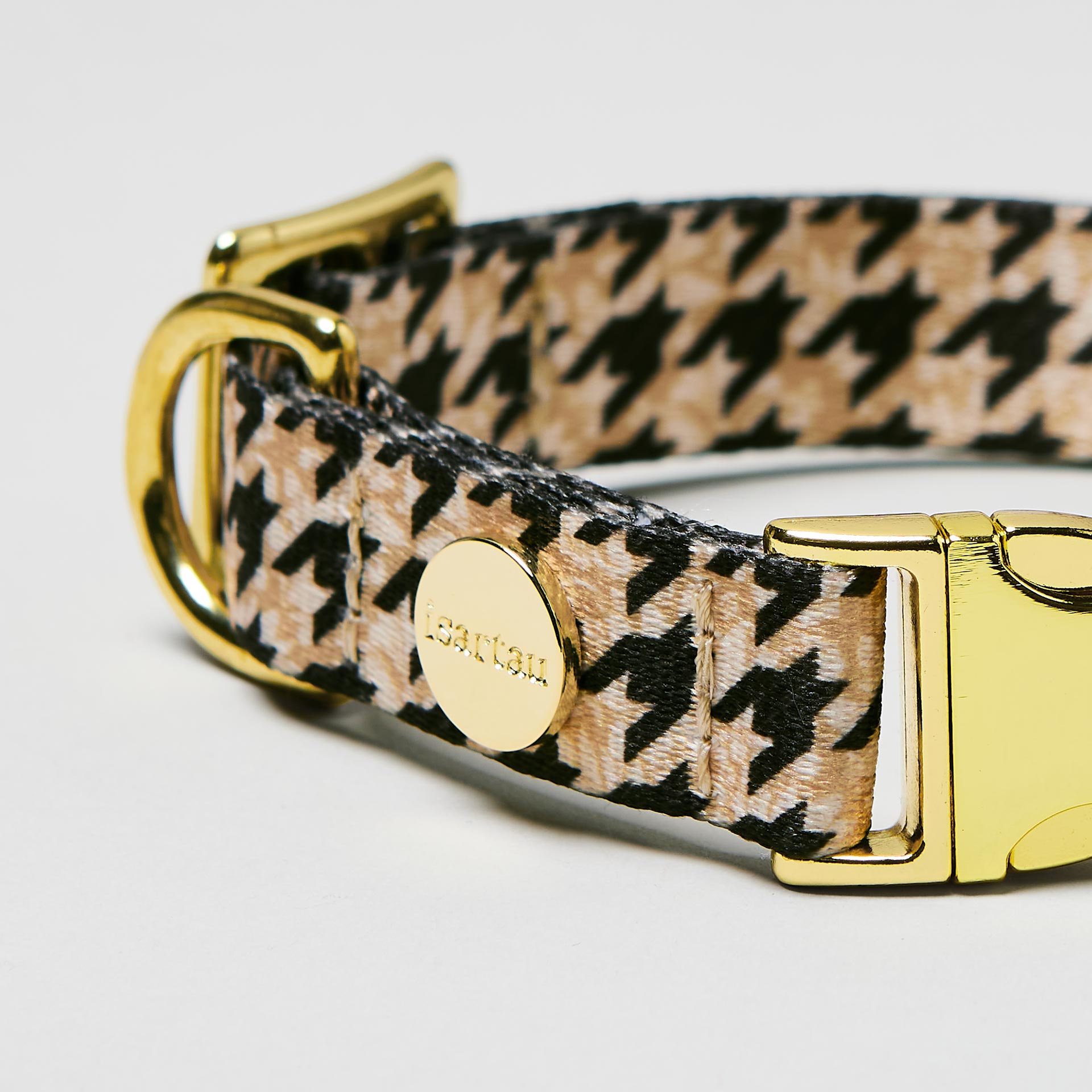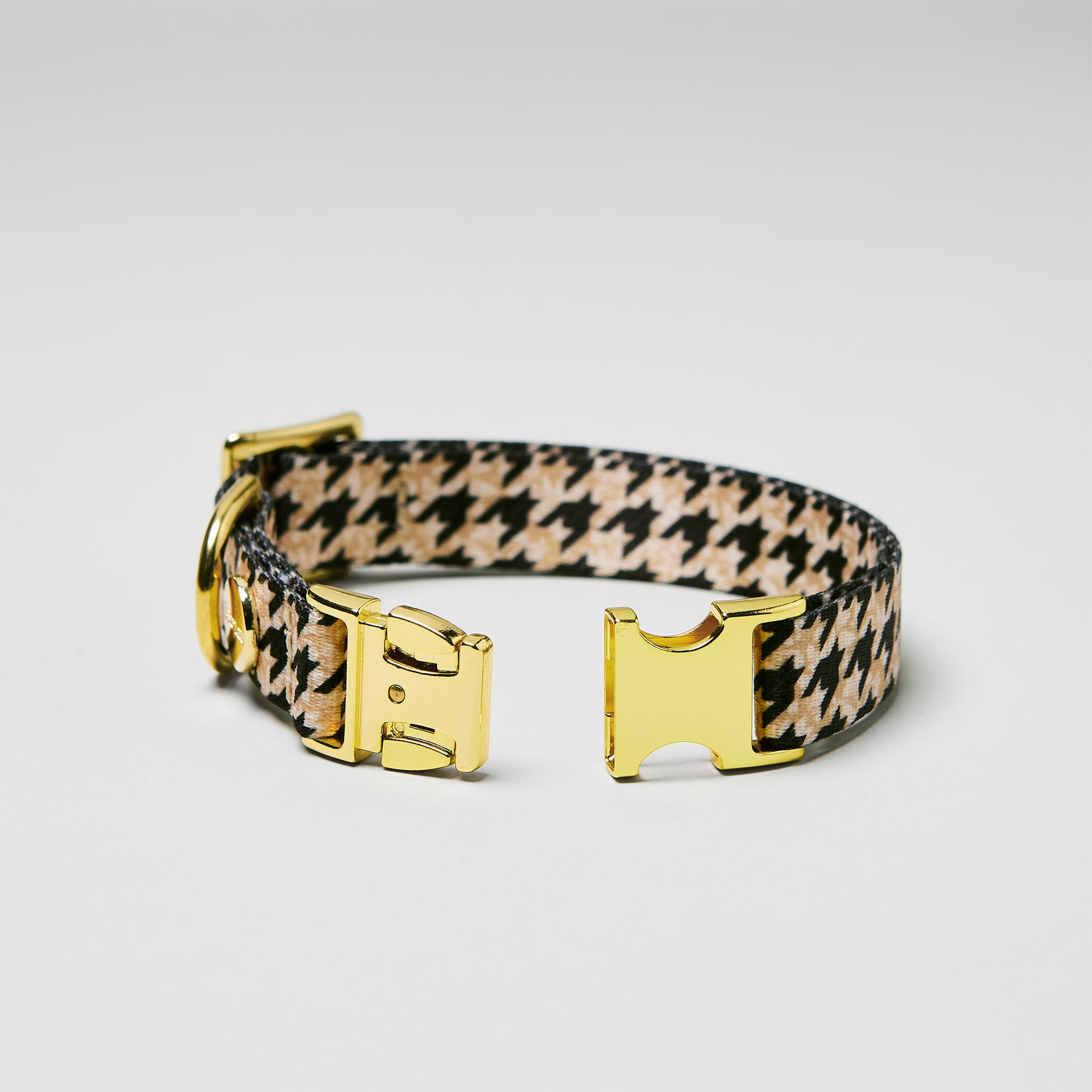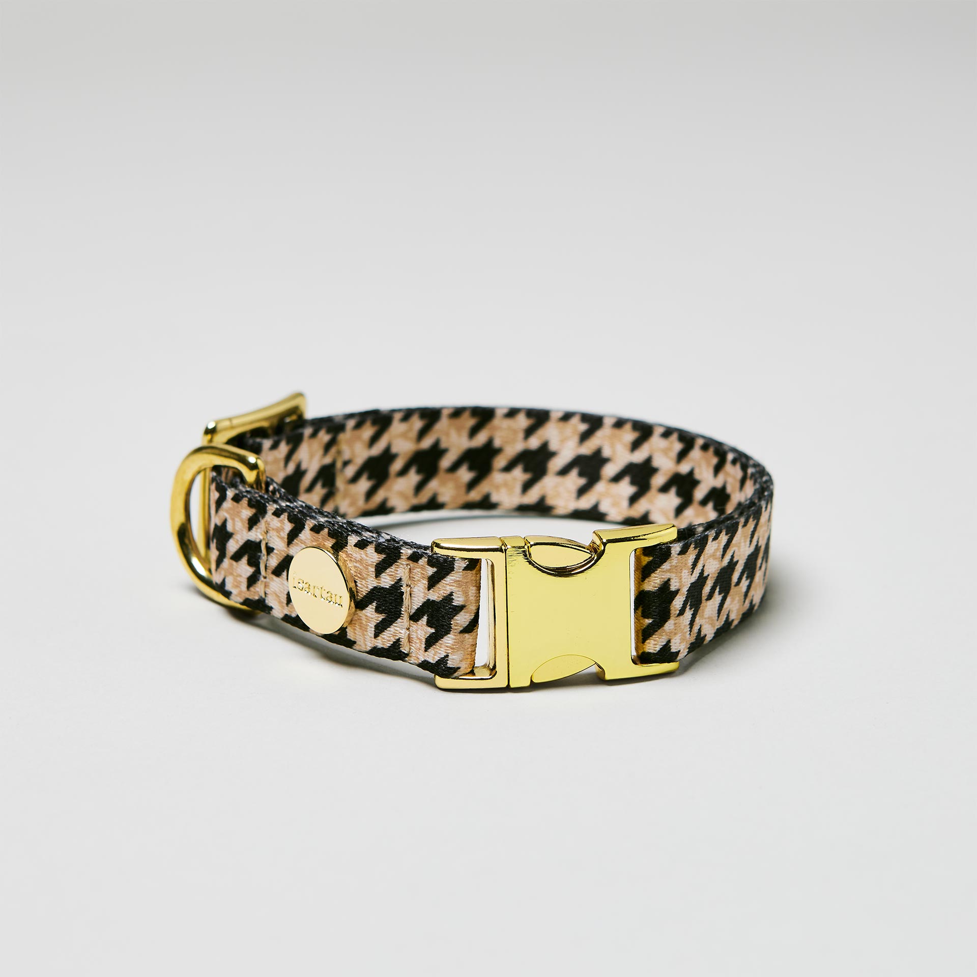 Für einen stillvollen Auftritt sorgt Ihr in unserem Designerhalsband Stadtgeflüster mit klassischem Hahnentrittmuster. Ein Musterklassiker für einen zeitlosen Look. Besonders edel macht es dabei die gewählte Farbkombination in Beige und Schwarz.