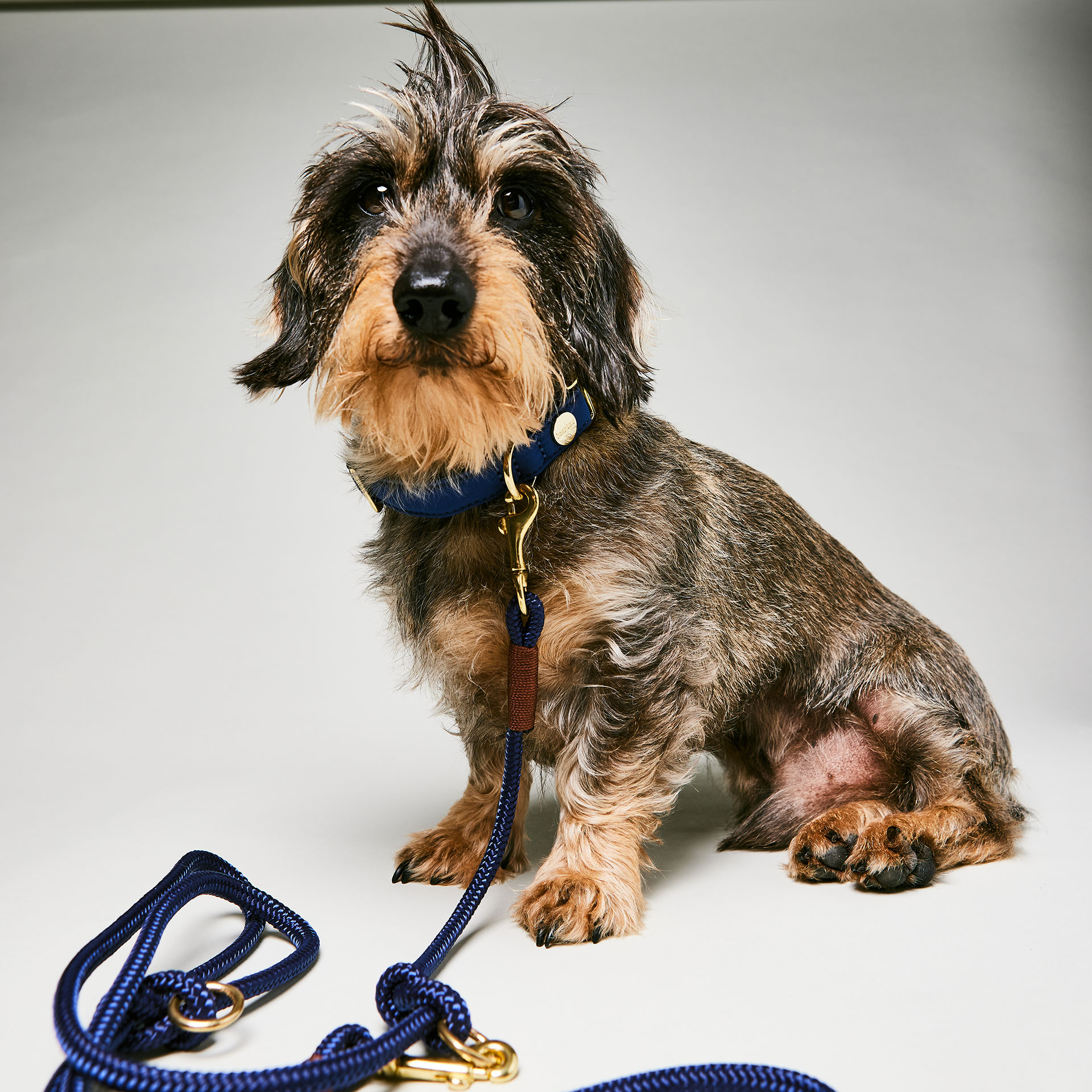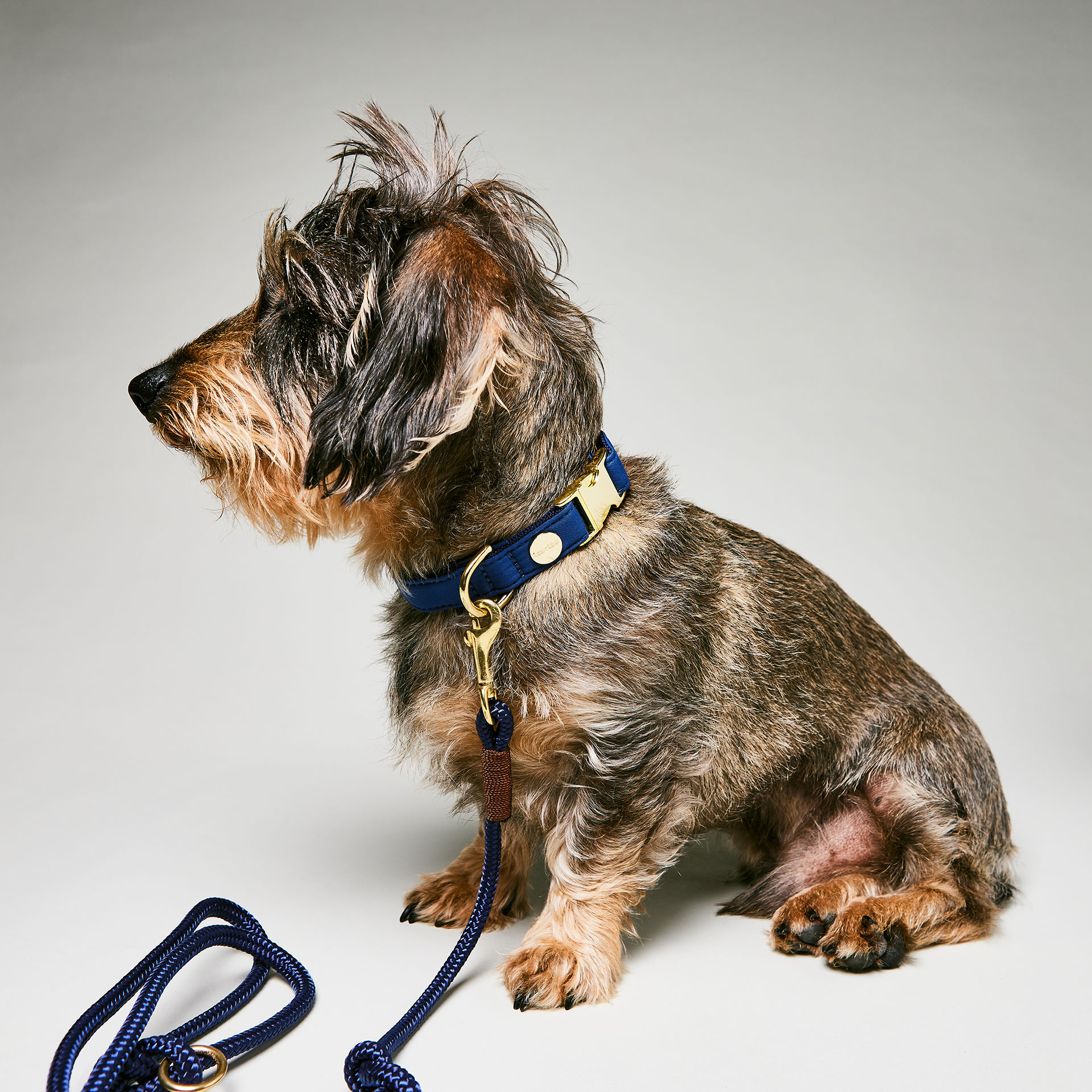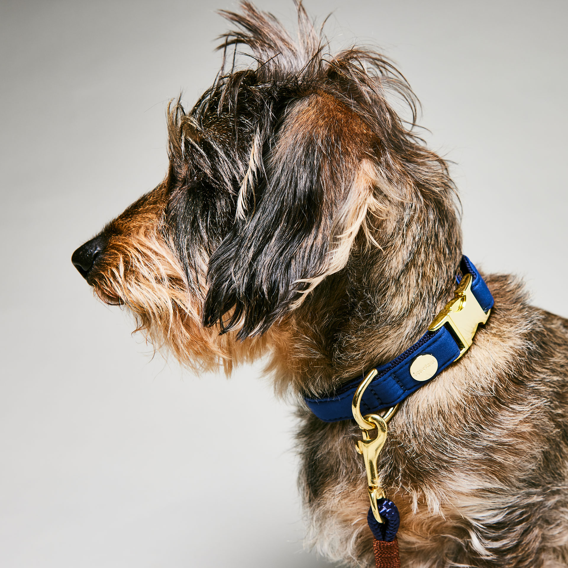 Unser verstellbares Softshell-Halsband in tiefem Dunkelblau bringt klassische Eleganz an den Hals. Für Mini bis Maxi, gefertigt in unserer bayerischen Manufaktur – mit höchstem Tragekomfort für jeden Tag.