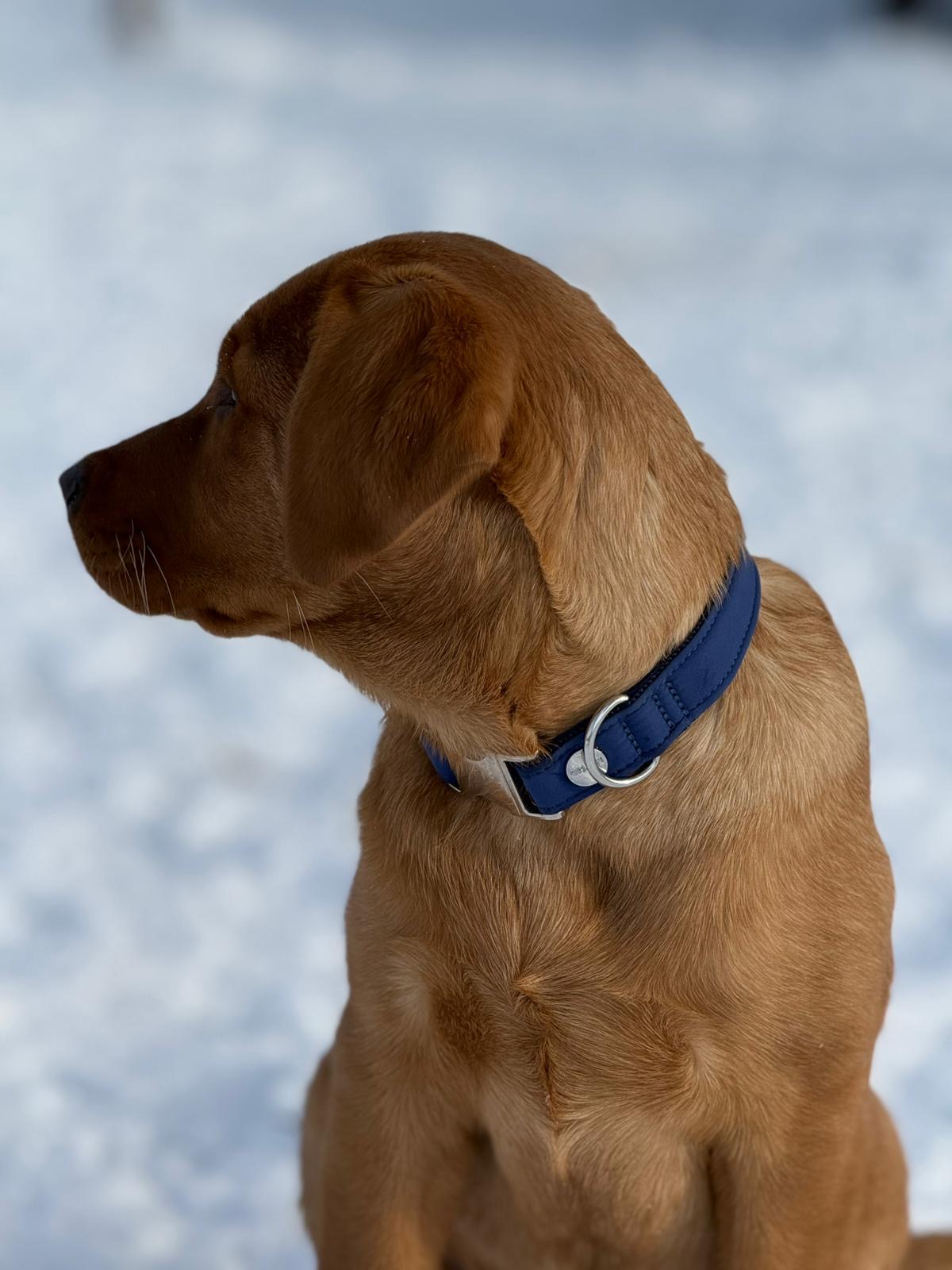 Unser verstellbares Softshell-Halsband in tiefem Dunkelblau bringt klassische Eleganz an den Hals. Für Mini bis Maxi, gefertigt in unserer bayerischen Manufaktur – mit höchstem Tragekomfort für jeden Tag.