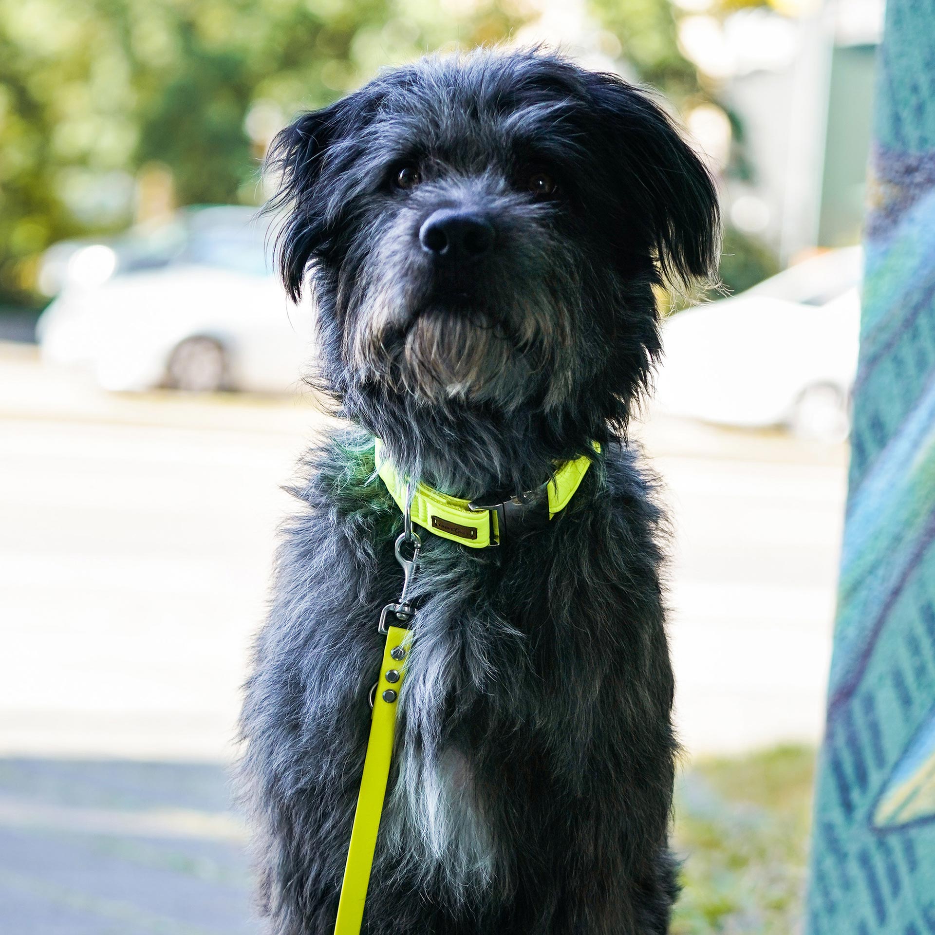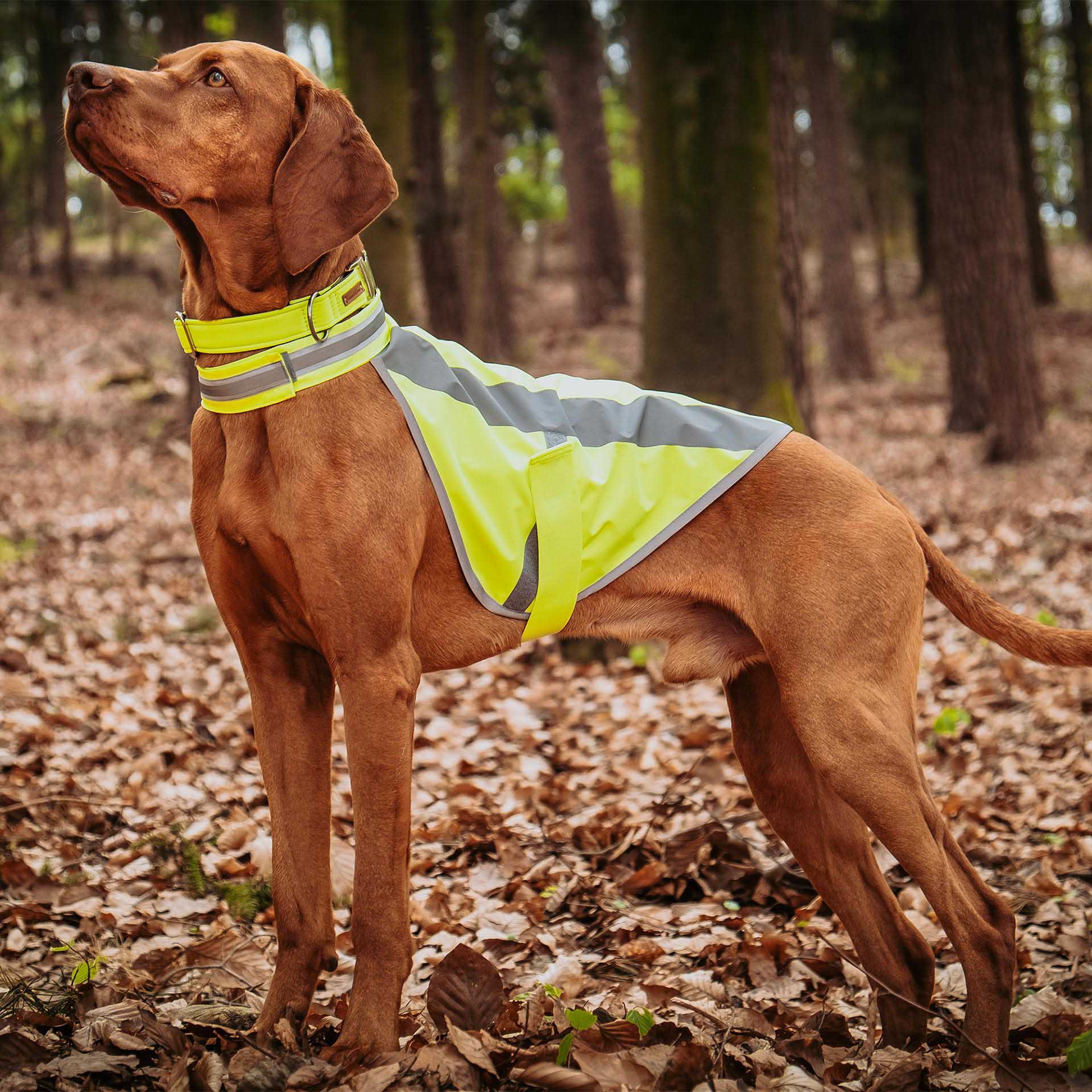 Unser verstellbares Softshell-Halsband in strahlendem Neongelb-Grau sorgt für maximale Sichtbarkeit und sportlichen Look. Für Mini bis Maxi, gefertigt in unserer bayerischen Manufaktur – perfekt für aktive Hunde und Halter.