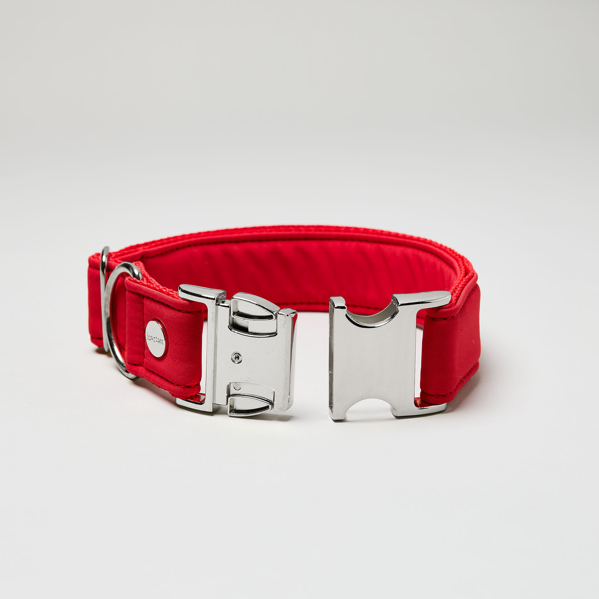 Unser verstellbares Softshell-Halsband in kräftigem Rot. Für Mini bis Maxi, gefertigt in unserer bayerischen Manufaktur – für aktive Abenteuer mit Farbpower.