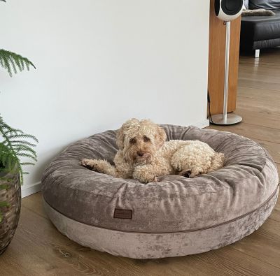 - Hundebett rund, Bagelbettchen, Velours TAUPE