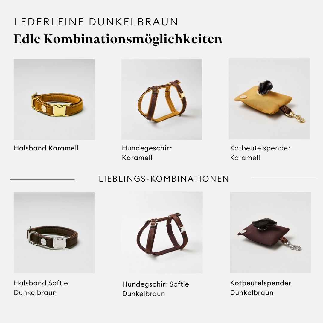 - Lederleine PURE 190 cm, DUNKELBRAUN (Standard Leine)