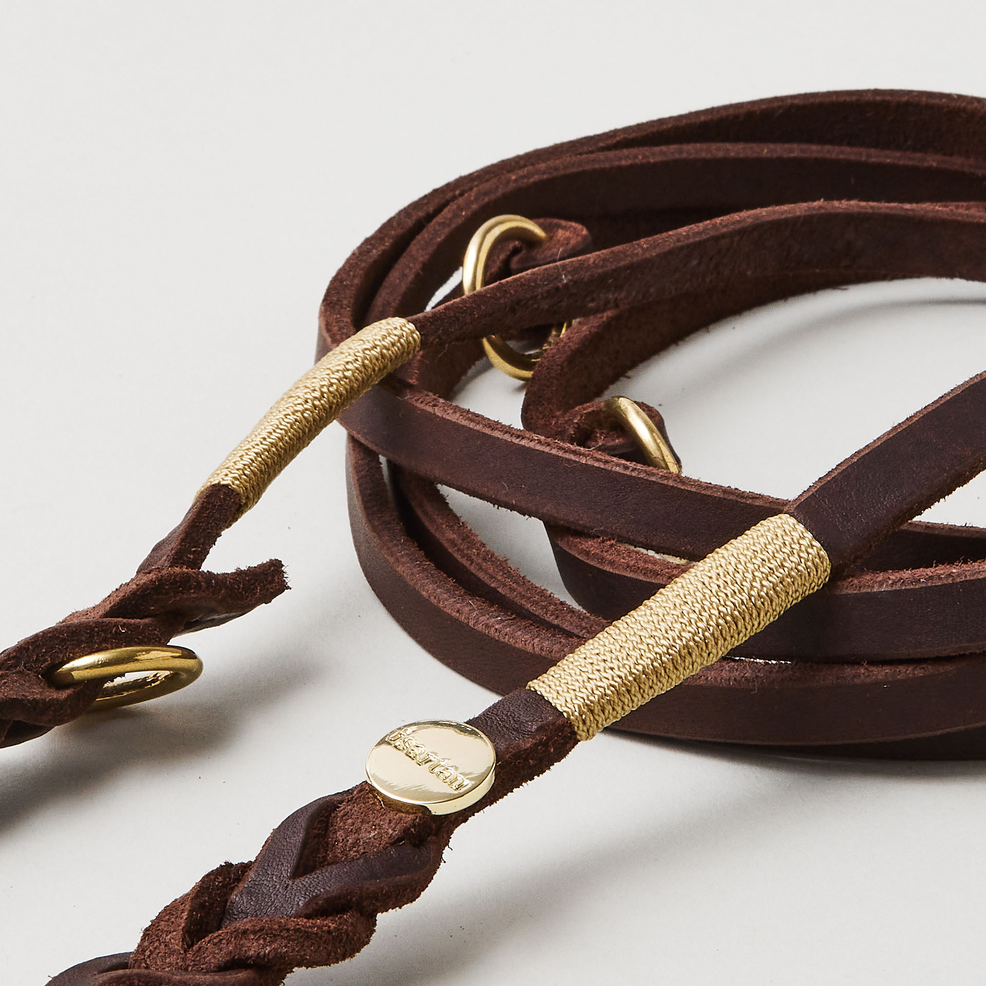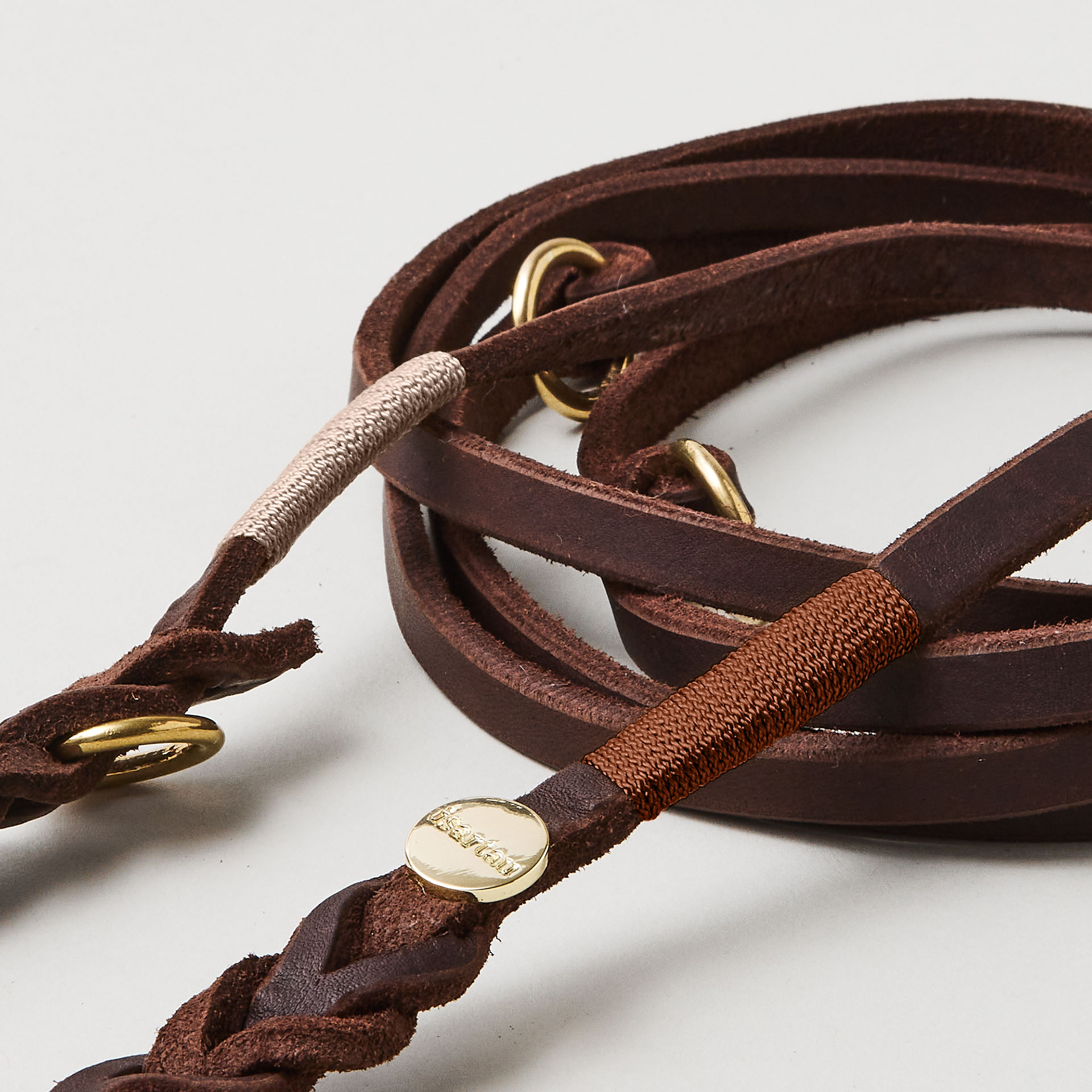Unsere weiche, verstellbare Führleine aus dunkelbraunem Leder liegt angenehm in der Hand und bietet Euch mit ihren 190 cm Länge den idealen Mix aus Nähe und Bewegungsfreiheit. Durch die frei wählbare Takelfarbe wird jede Leine zu einem echten Unikat.