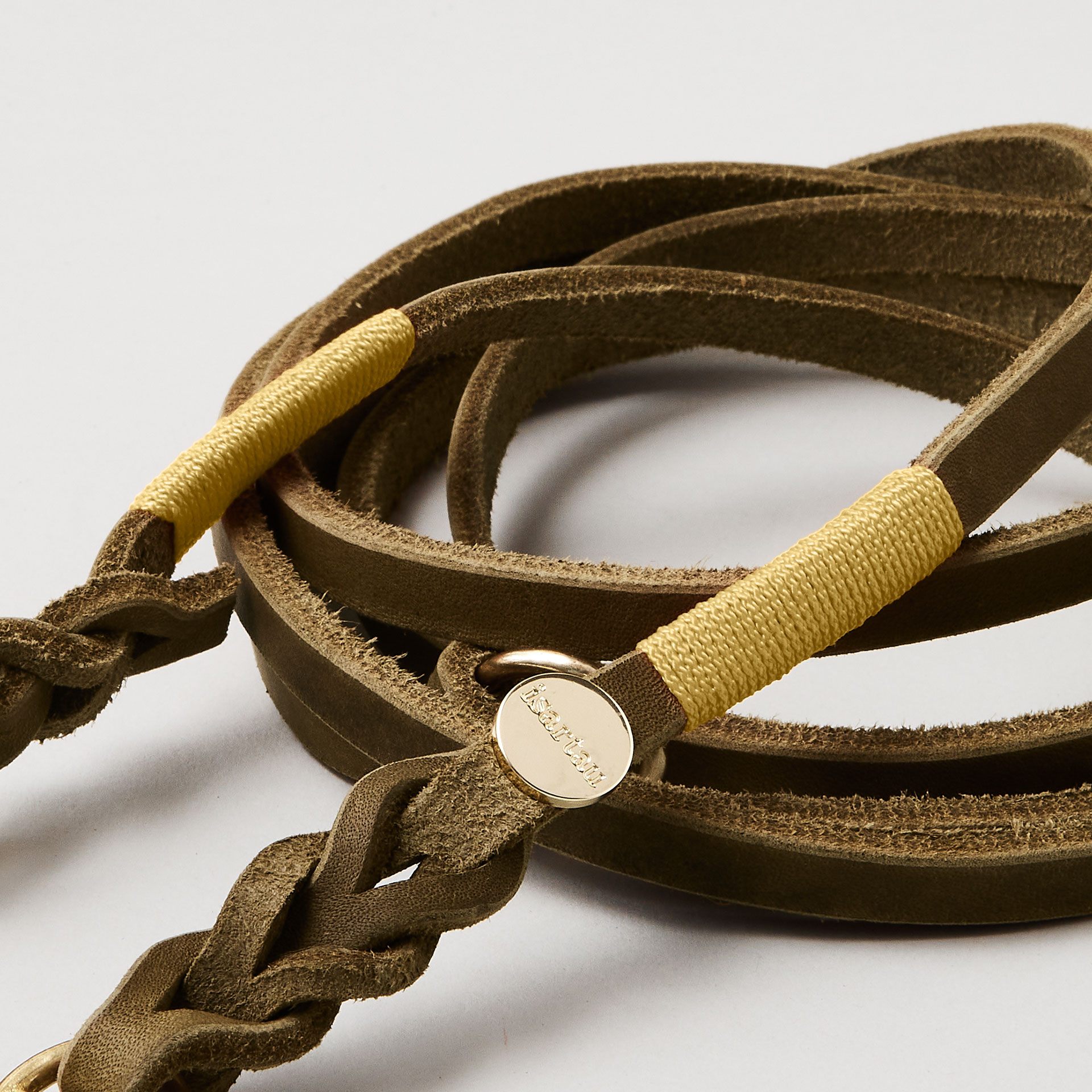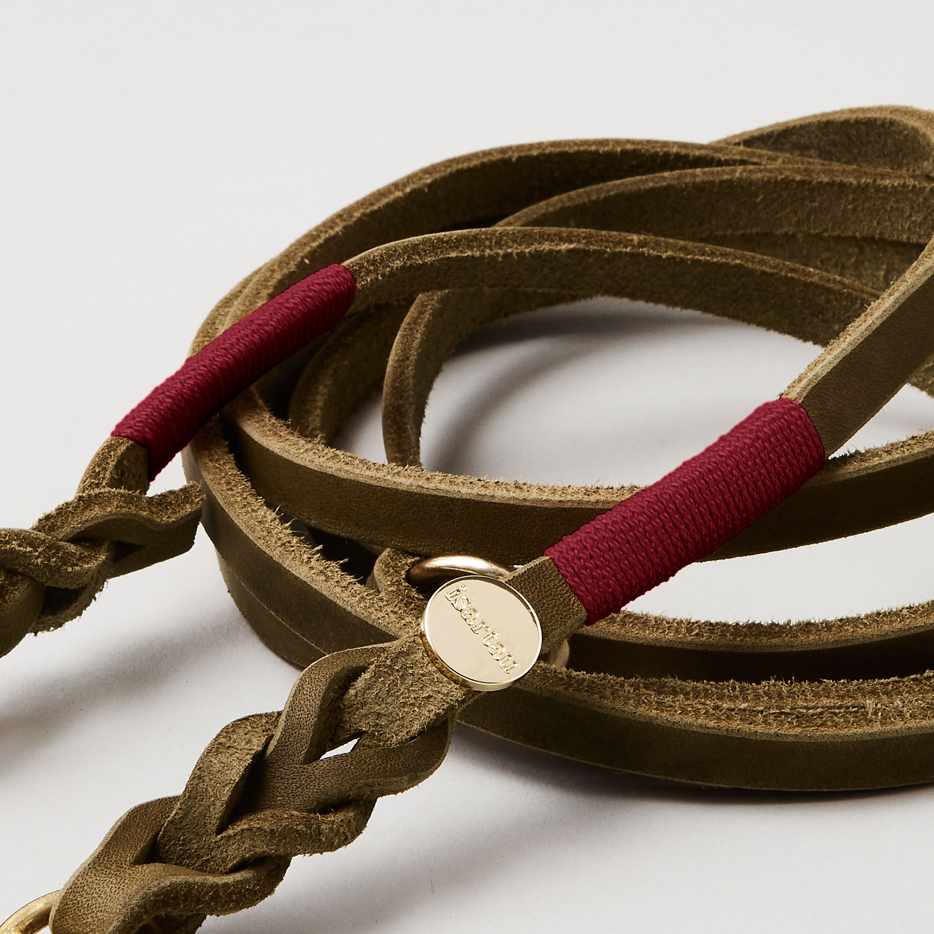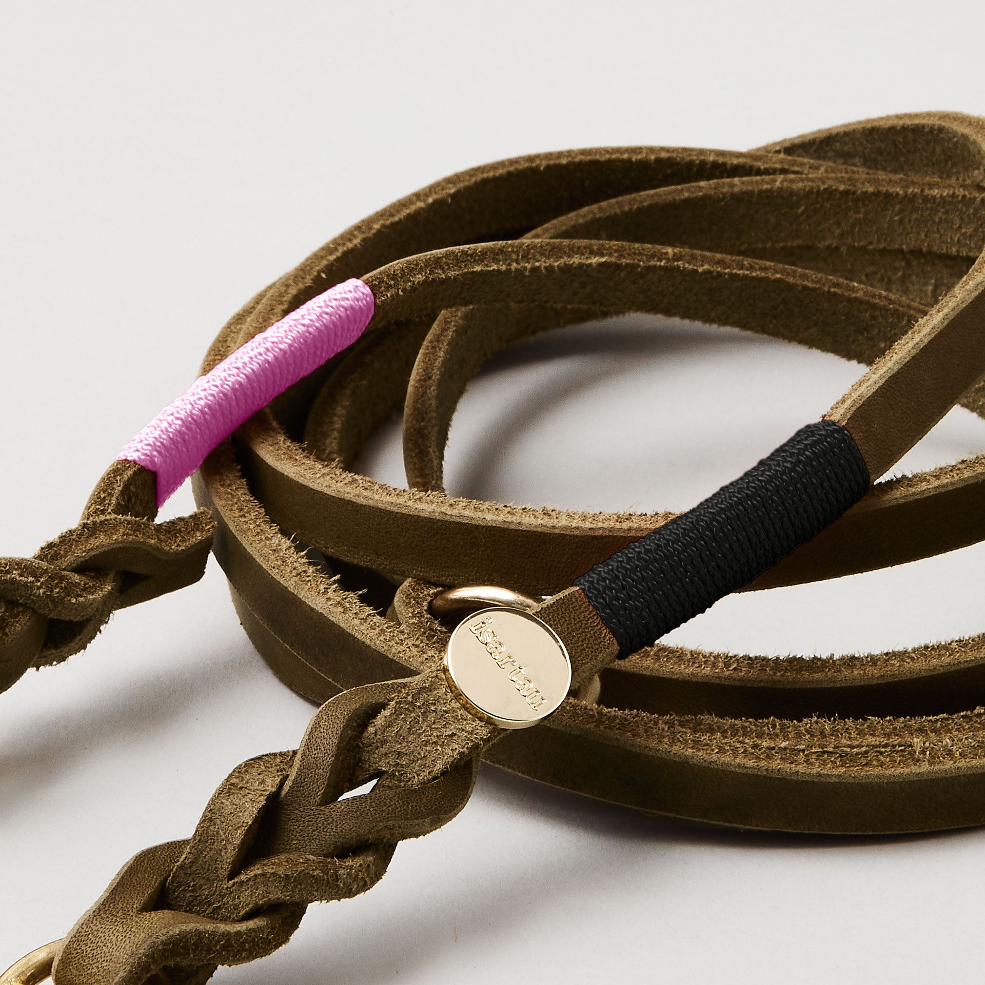 Unsere weiche, verstellbare Führleine aus olivem Leder liegt angenehm in der Hand und gibt Euch bei 190 cm Länge genau den richtigen Mix aus Nähe und Bewegungsfreiheit. Durch die Farbwahl der Takelung wird jede Umhängeleine aus Leder zu einem echten Unikat.