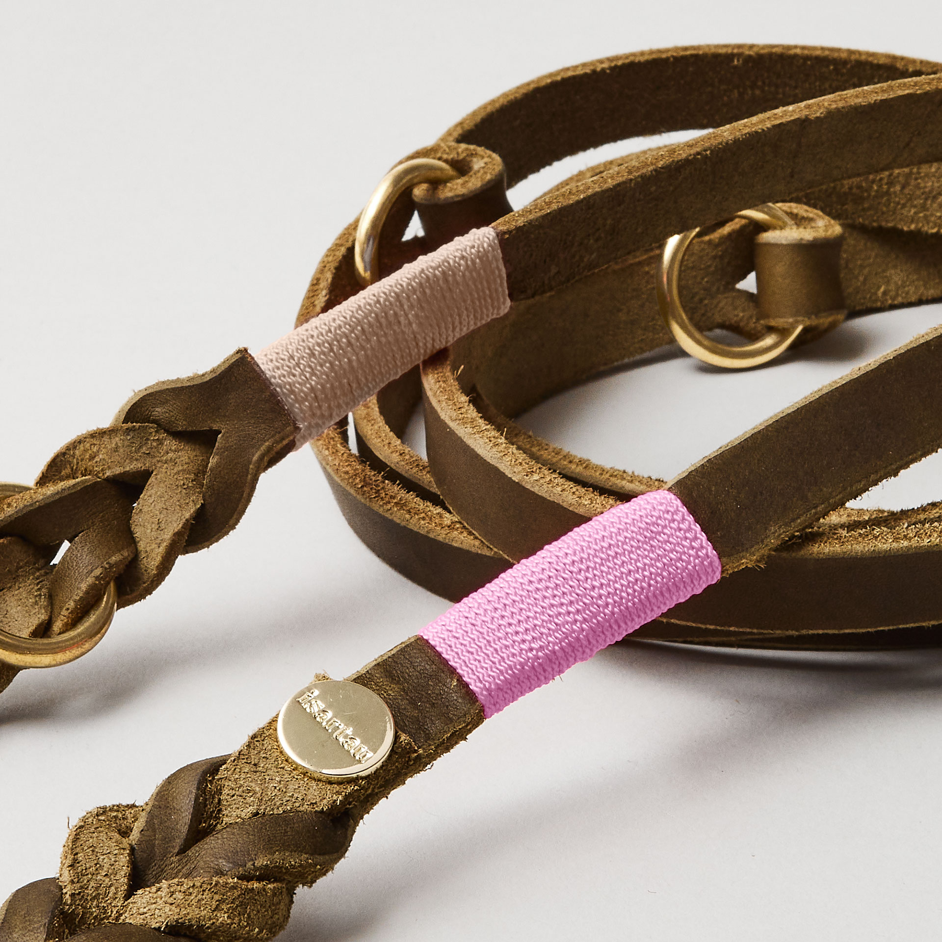Unsere weiche Umhängeleine aus olivem Leder lässt sich bequem quer über den Oberkörper tragen – so habt Ihr die Hände frei für Einkäufe oder den Coffee-to-go. Euer Hund genießt dabei volle Bewegungsfreiheit. Durch die Farbwahl der Takelung wird jede Umhängeleine zu einem echten Unikat.