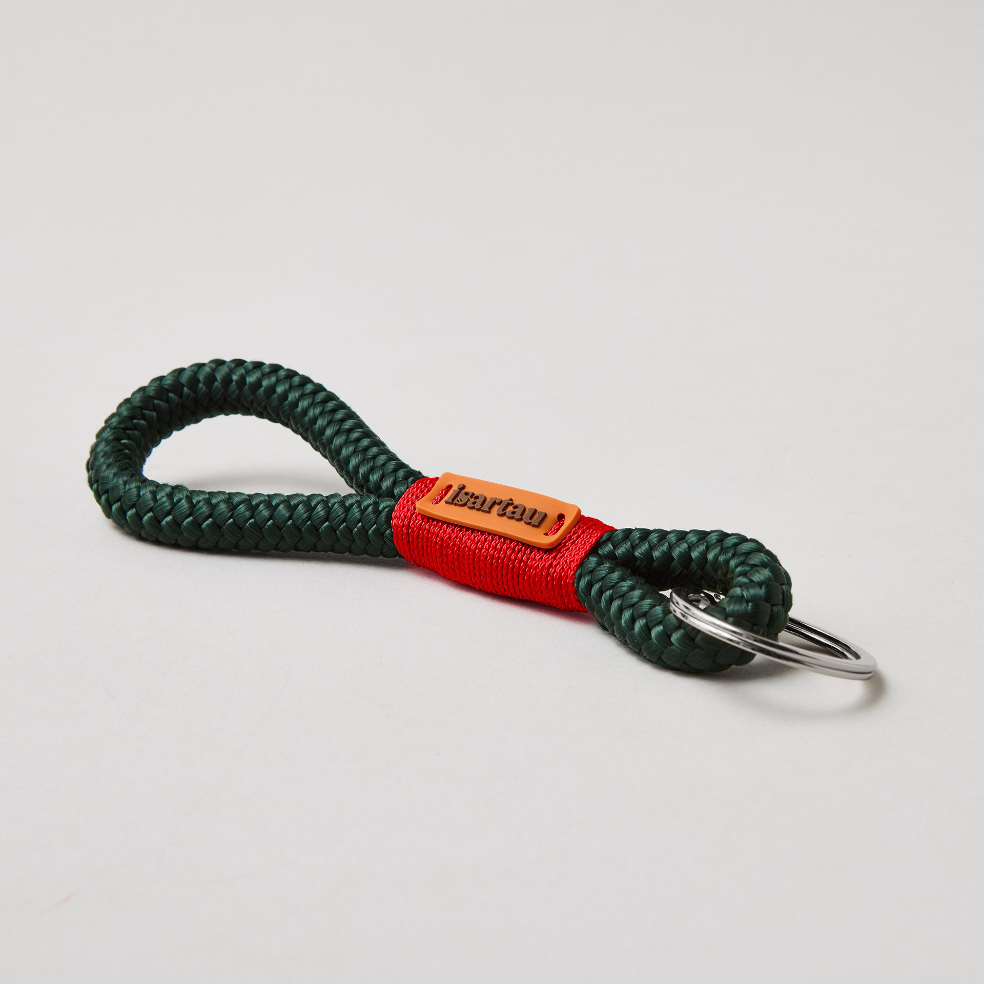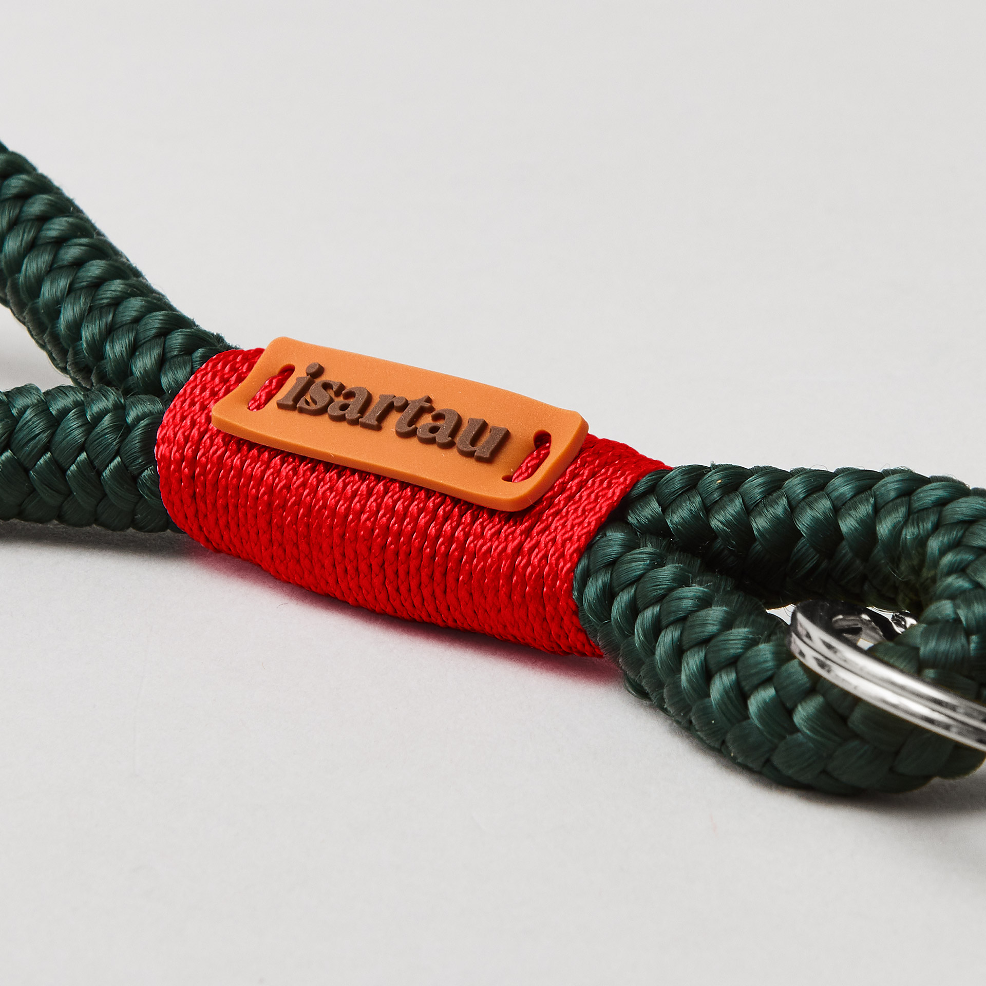 Dunkelgrün & Rot – abgestimmt auf unsere Leinen & Halsbänder. Der handgefertigte Schlüsselanhänger aus Tau passt ideal zu Deinem isartau-Set und sorgt für ein stimmiges Gesamtbild. Auf Wunsch ergänzt durch einen feinen Schmuckanhänger.