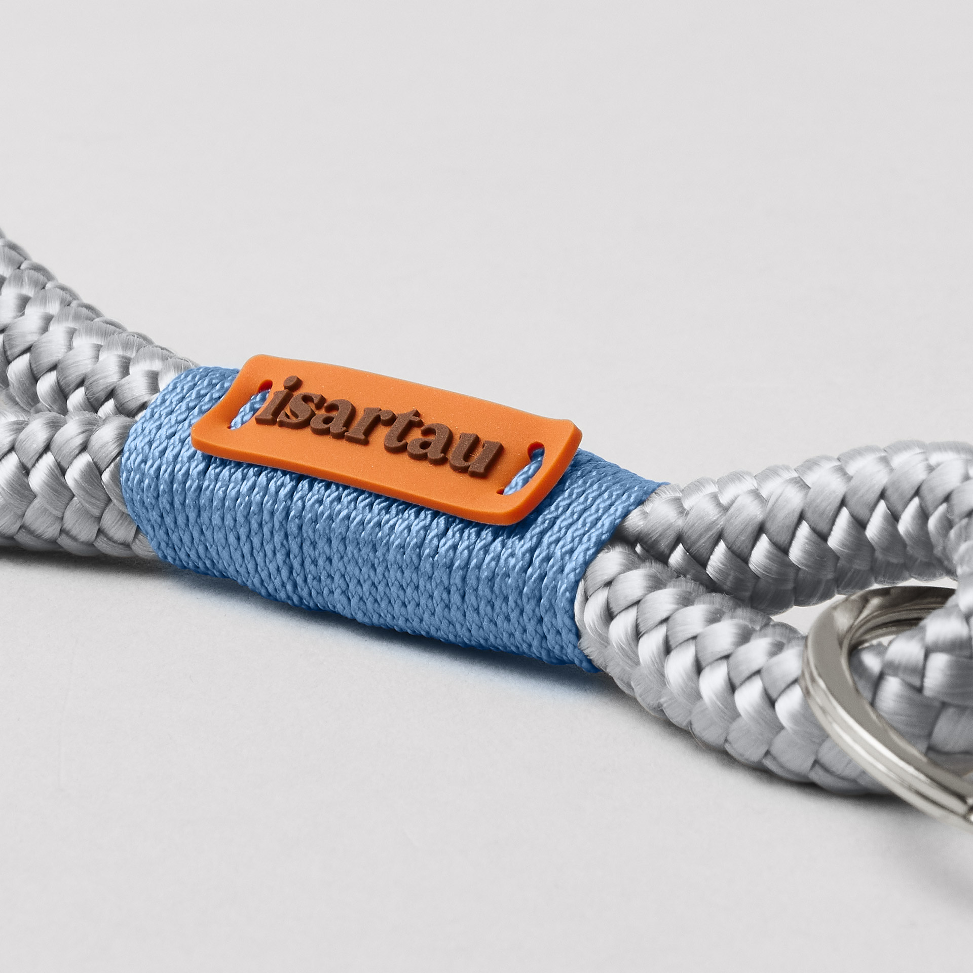 Hellgrau & Hellblau – klar, freundlich, handgefertigt. Der Schlüsselanhänger aus Tau entsteht in unserer bayerischen Manufaktur mit viel Liebe zum Detail – langlebig, angenehm in der Hand und auf Wunsch ergänzt durch einen feinen Schmuckanhänger.