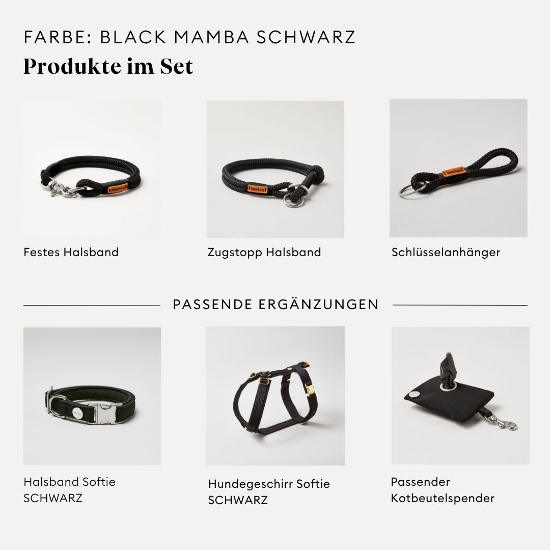 Unsere Leinen, Stoffhalsbänder und Hundegeschirre sind sowohl für die Maschinenwäsche als auch für die Handwäsche geeignet.