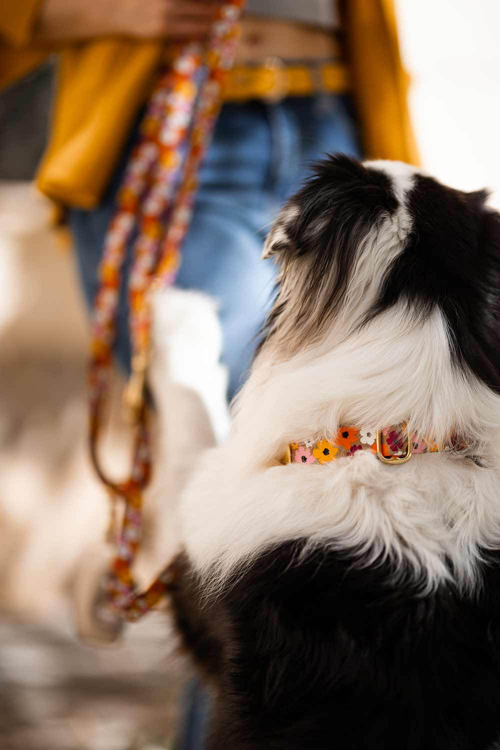 Das Design „Blumenmeer“ ist inspiriert von floralen Mustern, die für Lebensfreude und Natürlichkeit stehen. Mit seiner frischen, verspielten Eleganz bringt es Leichtigkeit in Deinen Alltag mit Hund und verleiht jedem Outfit eine besondere Note.