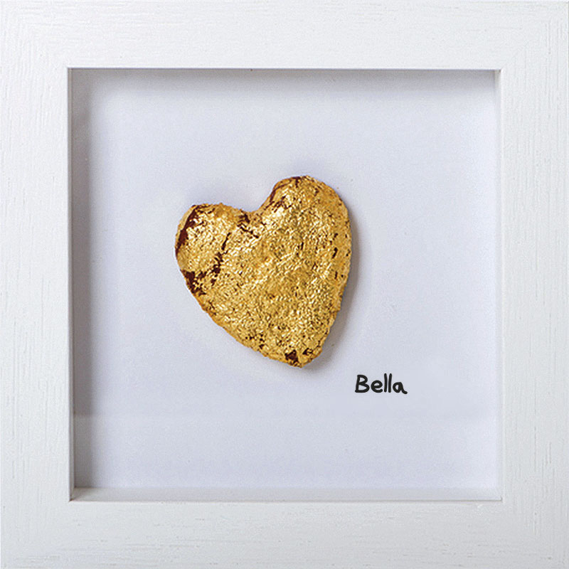 mit 23,5 Karat echtem Schwabacher Blattgelbgold in weißem Holzrahmen