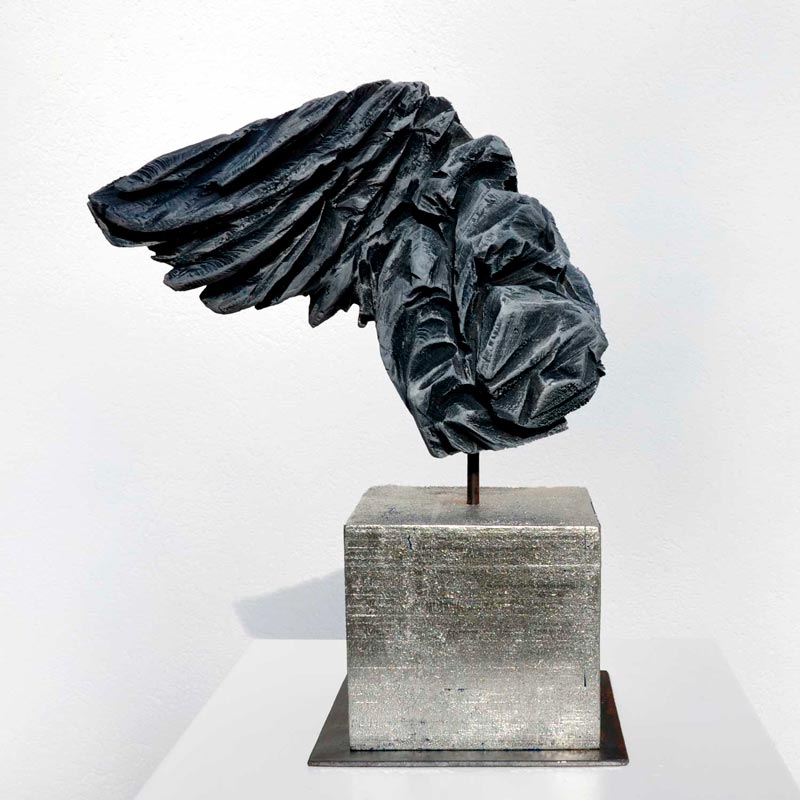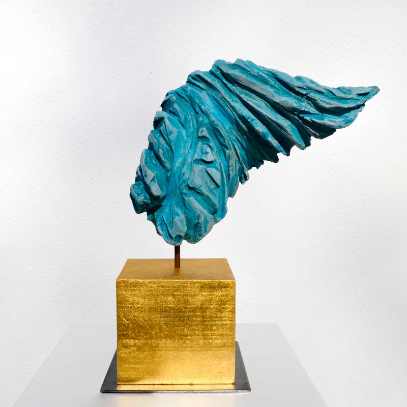 Handgesägter Flügel auf vergoldetem Kubus